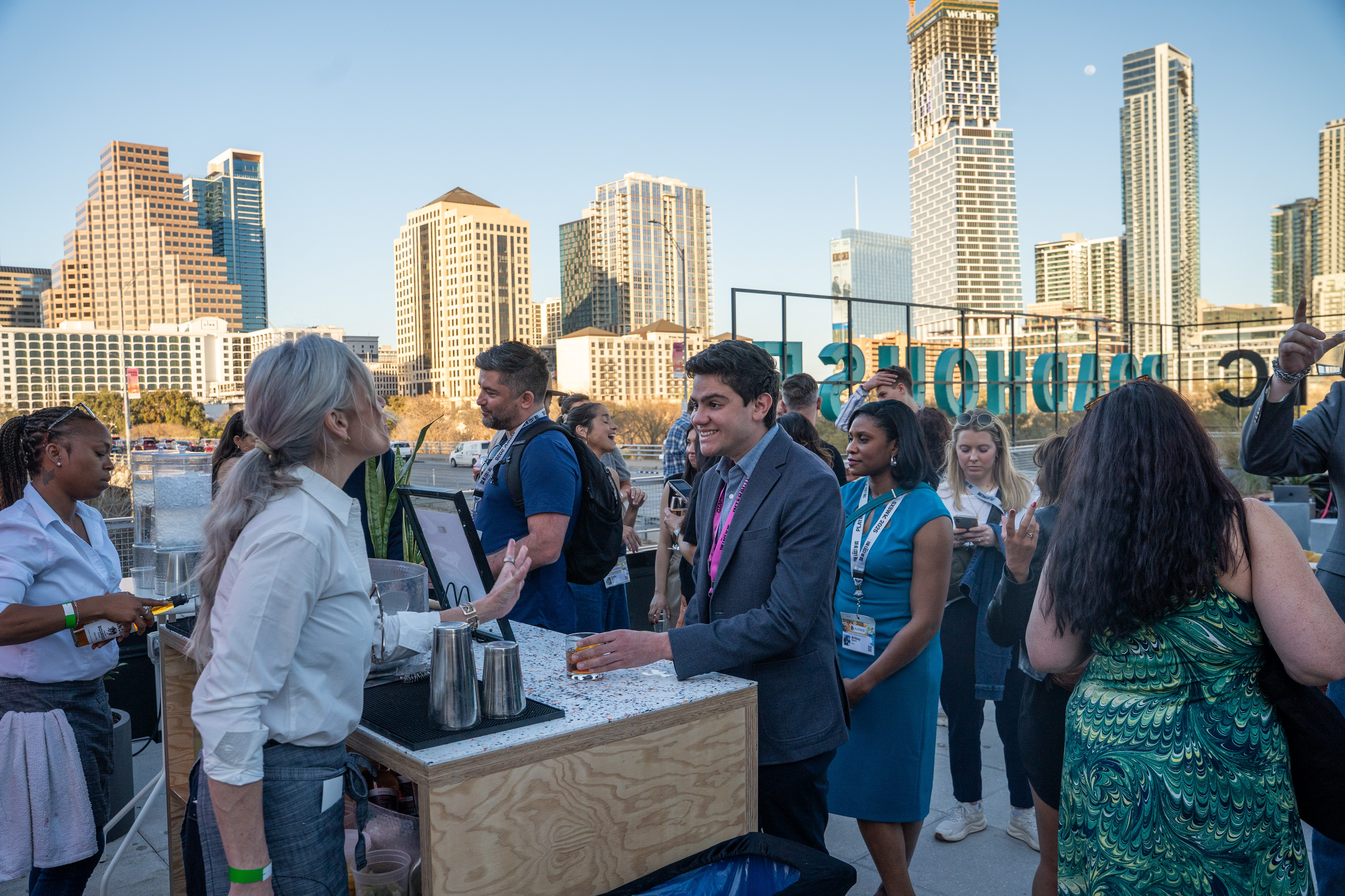 Happy Hour views from the Rivian Electric Roadhouse rooftop during SXSW 2025