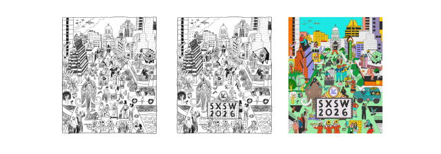 SXSW 2026 marks 40 years of our homegrown event, and this year, we’re transforming downtown Austin into a global, week-long village for creatives and innovators that will spill out across the city. Every year, we commission an artist to help capture the zeitgeist of the SXSW year ahead, so naturally, Josh was the perfect fit. Now more than ever it feels like creatives and innovators need to be together to solve big problems and keep the fires lit when it feels especially chaotic.